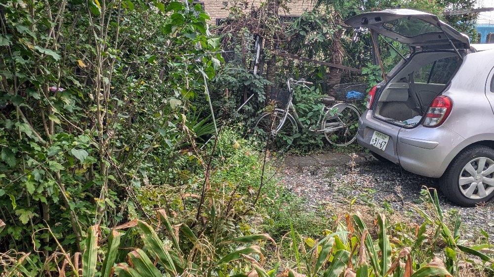 川越市、木の伐採、草むしり 敷地から出た木の枝切り 作業中の写真 家の西側木の伐採 作業中の写真 家の西側木の伐採 作業中の庭 庭の中の剪定 作業中の写真r 屋敷の草むしり 作業中の写真 庭の梅木の剪定 作業中の写真 庭の南の庭